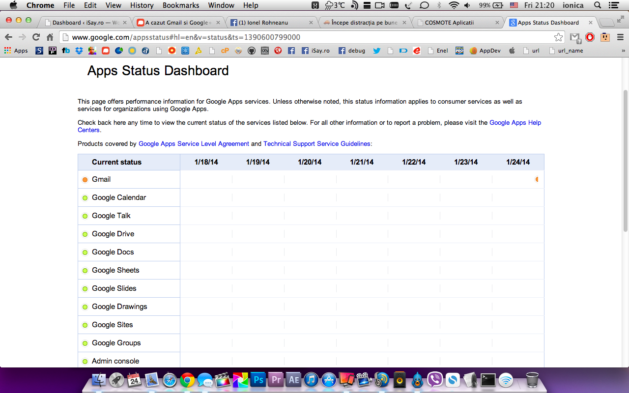 Cred ca este prima oara in cei peste 10 ani de Gmail cand vad caci serviciul lor este temporar indisponibil. Vroiam sa caut ceva pe mail si nu mergea, da nu mergea nenica, tot isi dadea retry. Odata cu Gmail a cazut si Google+. Sunt sigur ca Basescu e de vina.