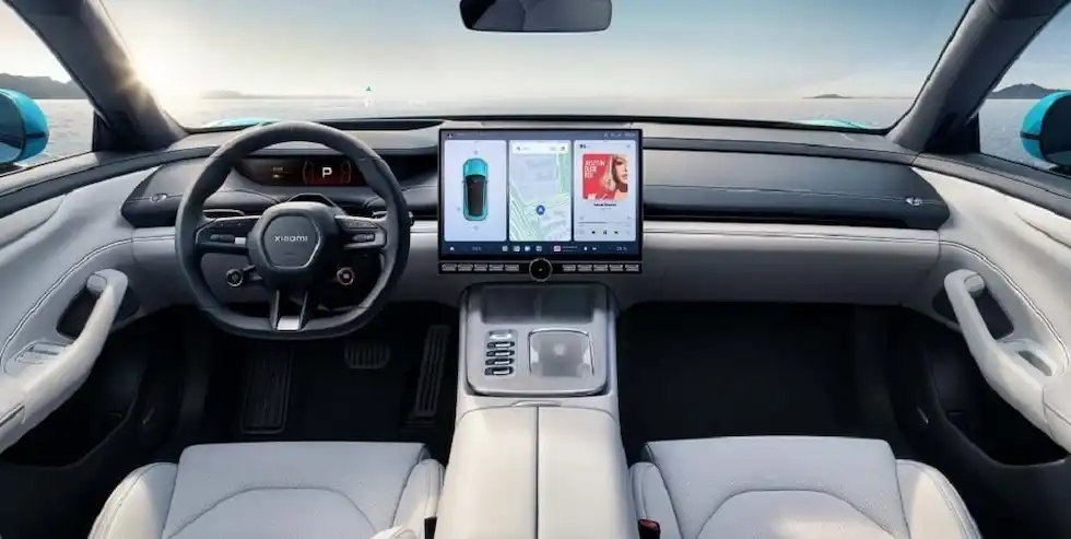 Interiorul este dominat de un sistem infotainment de 16,1 inci cu rezoluție 3K, un instrumentar digital de 7,1 inci, sistem audio Dolby Atmos, head-up display și chiar un mini-frigider. Mașina rulează pe HyperOS, sistemul de operare unificat Xiaomi, iar funcțiile de asistență la condus sunt susținute de senzori LiDAR și un procesor NVIDIA Orin, sub denumirea Pilot Pro.
