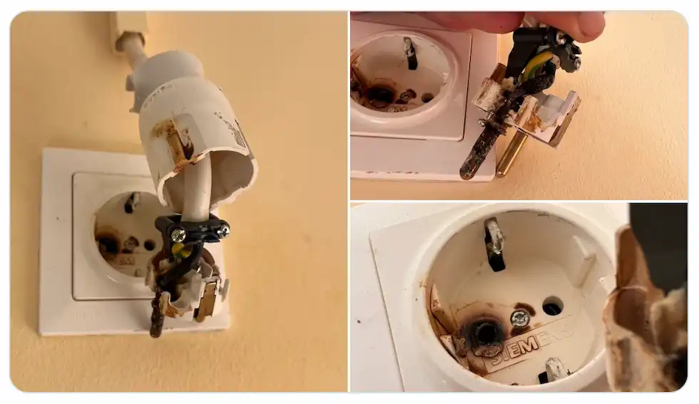 Priza de mai sus este dedicată pentru aerul condiționat, în tabloul principal am siguranță de 16A pentru ea motiv pentru care am ales să o elimin și să leg cablul pe direct. Pe această priză avea un singur consumator, aerul condiționat, nu știu cum a prins umezeală sau cum de a început să topească priza. Toată casa este plină de prize Siemens cu fel și fel de consumatori în ele și nu am pățit așa ceva.