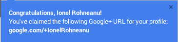 Astazi am primit o notificare de la Google, cum ca pot modifica profilul meu de Google+ cu un Custom URL personalizat.