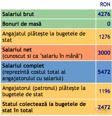 • Per total ca tu să iei 3000 lei bani în mână, statul colectează 2472 lei