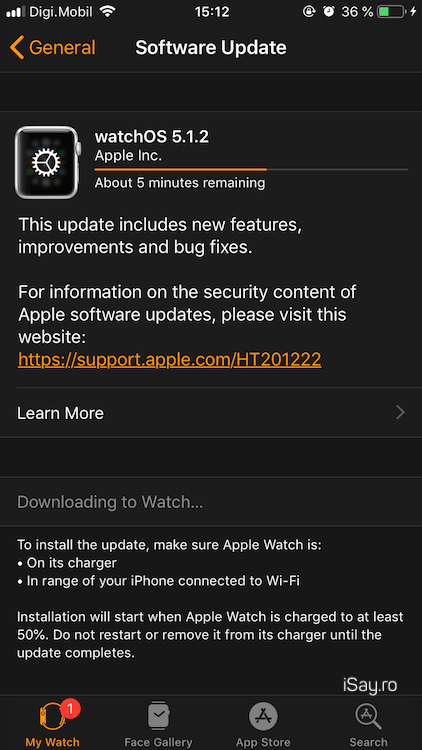 După ce ați urmat pașii de mai sus, înseamnă că aveți ultimele versiuni pe Apple Watch 4 și iPhone 5s (minim). Pe iPhone, mergeți în Settings → General → Region and Language → selectați United States.