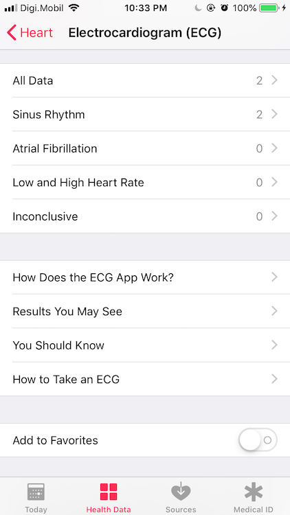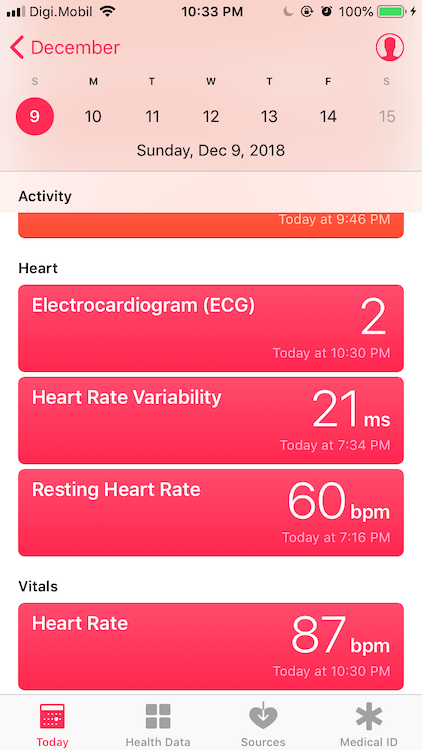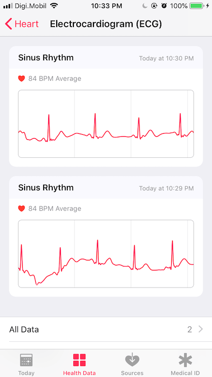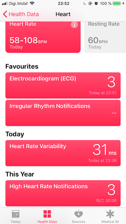 Toate datele sunt salvate apoi în aplicația Health de unde puteți selecta zile, perioade, informații legate de fluctuație puls sau bătăi ale inimii. Eu am făcut 3 teste, toate sunt bune nu am probleme cu inima. Așa cum Apple menționează de multe ori la activare, acest serviciu EKG pe Apple Watch 4 vă avertizează dacă aveți o problemă și trebuie să mergeți de urgență la doctor, în nici un caz să vă tratați singuri.