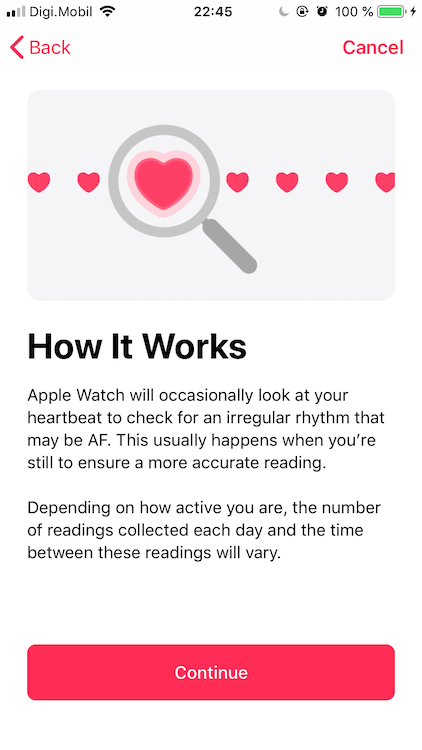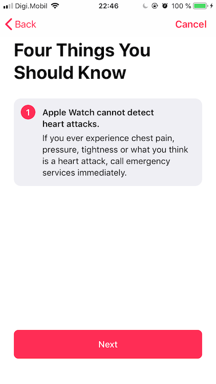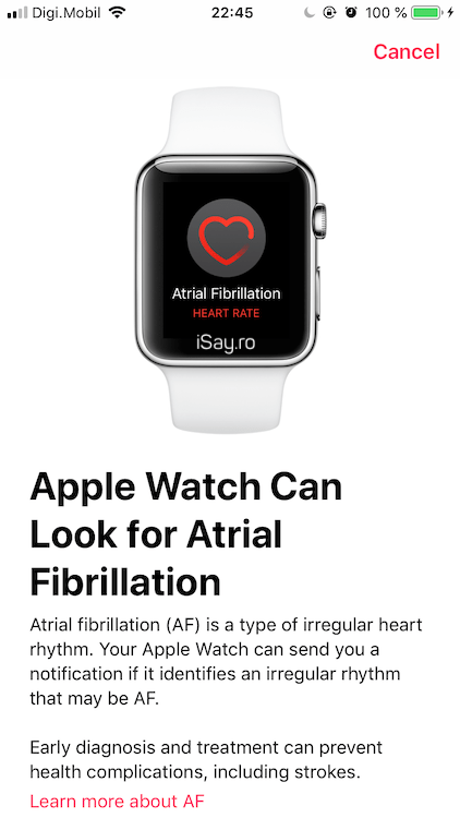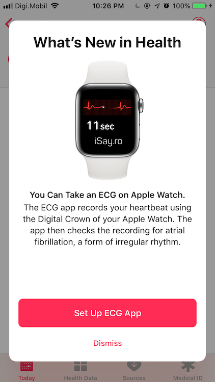 Răspunsul este da, cu un mic workaround până instalați aplicația. Dacă o să o căutați în App Store, nu o să o găsiți pentru că ea, datorită regiunii (doar US) apare doar în aplicația Health. Aveți nevoie de watchOS 5.1.2 și iOS 12.1.1 pentru a putea folosi această funcție. La final am schimbat locația înapoi în România, atât pe iPhone cât și pe Apple Watch și se poate folosi în continuare.