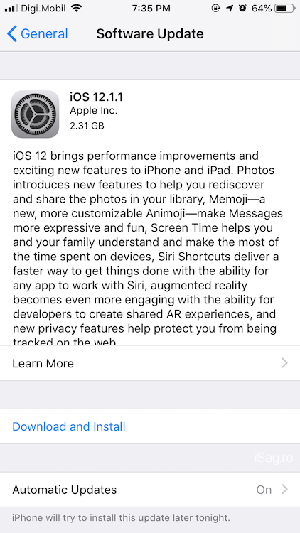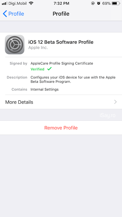 Pentru că nu funcționează dacă aveți iOS 12.1.1 Public Beta, trebuie să ștergeți profilul din Settings → General → Profiles → Remove Profile. După, faceți backup în iCloud sau pe MacBook, iar apoi restore la ultima versiune de iOS folosind iTunes.