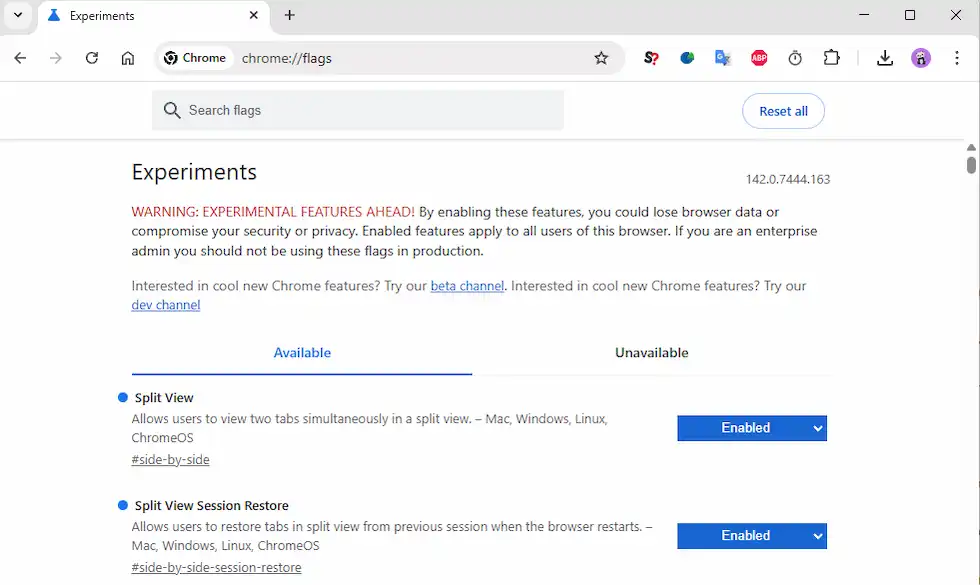 Google Chrome testează o funcție numită „Split View” (sau „Split Tabs”), care îți permite să afișezi două pagini web una lângă cealaltă în aceeași fereastră de browser (în același tab).