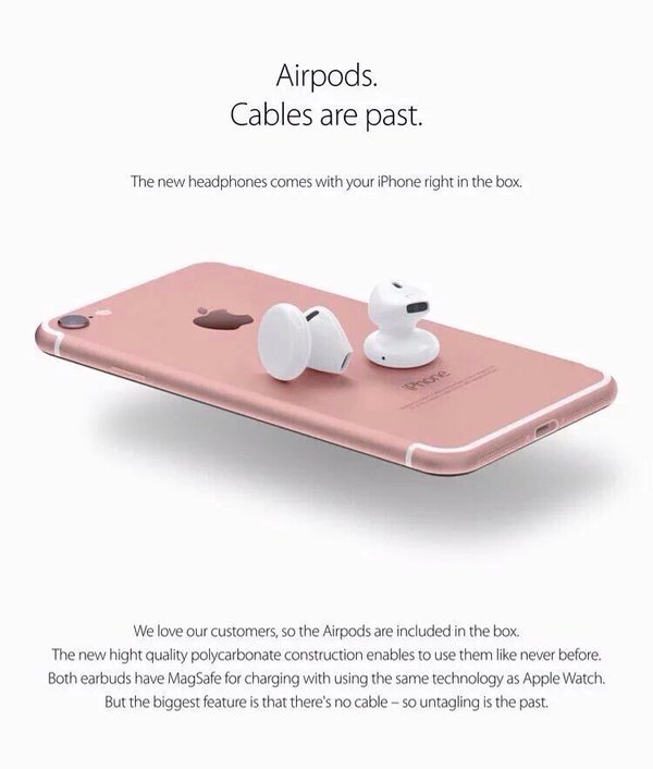 S-a confirmat! Noile AirPods se găsesc în pachetul iPhone 7. O nouă zi o nouă informație scursă pe internet despre iPhone 7 și evenimentul din 7 septembrie. Deci, am scăpat de mufa jack, rămânem cu puțini mAh în plus față de versiunea veche a bateriei existente pe iPhone 6S, însă cu un consum mai mare pe bluetooth chiar și LE cum îl laudă ei.