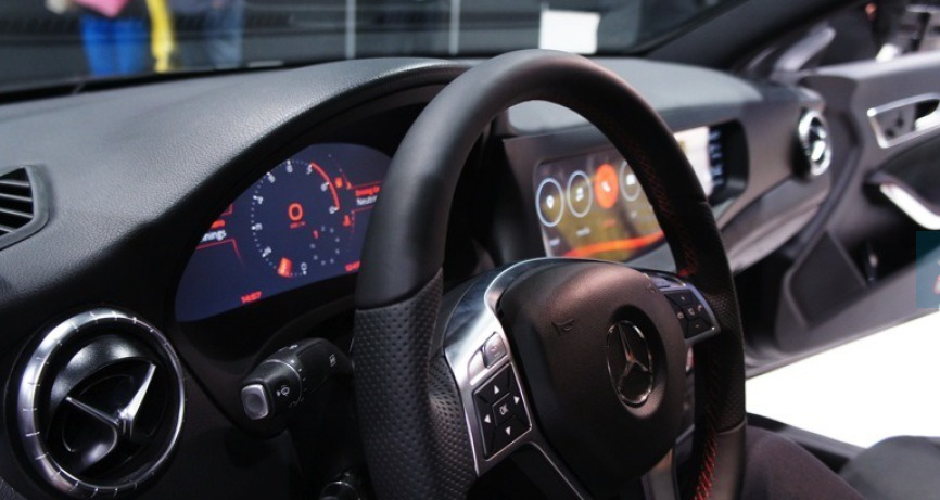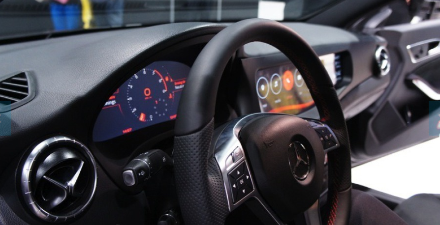 Din seria masinilor, pentru ca Mercedes CLA45 AMG aduce un ecran imens pe consola centrala (tunata bineinteles) cu ajutorul caruia putem controla diverse functii sau de a afisa ceea ce se petrece pe ecranul telefonului. Il putem folosi ca navigatie, telefon, putem vedea toate detaliile masini, presiune, roti, motor, circuite, senzori si tot ceea ce va poate oferi mintea 🙂