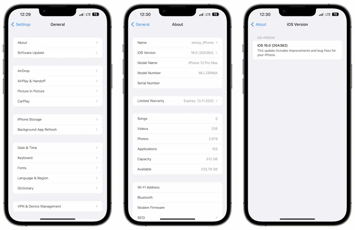 Din ce am citit pe net, începând cu iOS 16 vom avea posiblitatea să ștergem un anumit patch și să revenim la cel anterior. Pentru a putea face asta trebuie să mergem în Settings → General → About → iOS și de aici să selectăm varianta pe care o dorim ștearsă.