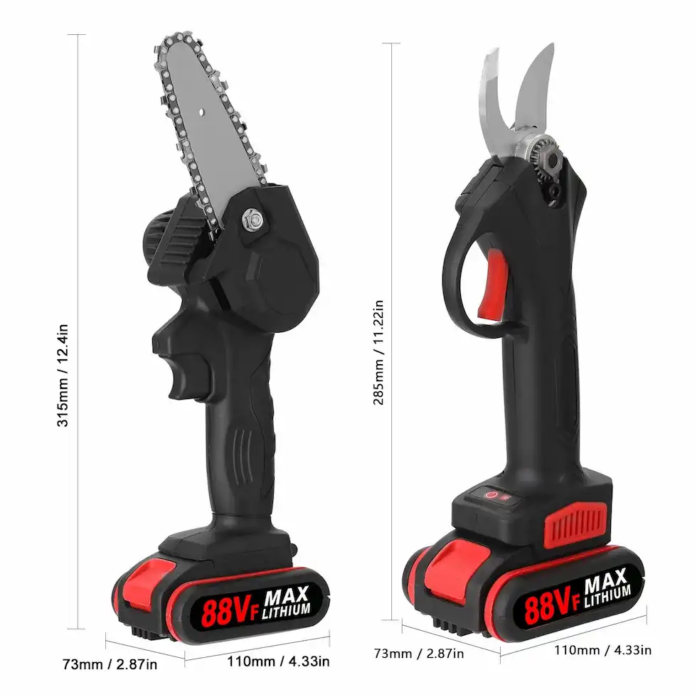 Cutia cu toate accesoriile cântărește 3.5kg. Toate detaliile le găsiți aici. Pe eMAG nu găsești un astfel de pachet cu foarfecă electrică și mini drujbă, doar separat și la prețuri peste 3-500 lei.