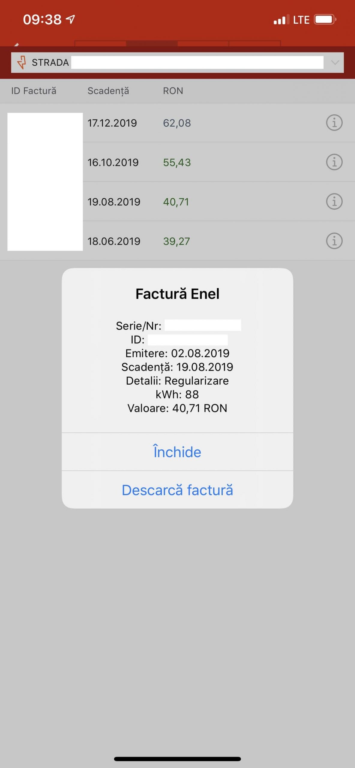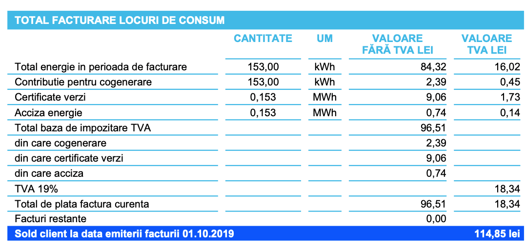 Mie mi-a fost emisă factura cu o zi înaintea ta. Pentru 95 de kw am de platit 56 de lei