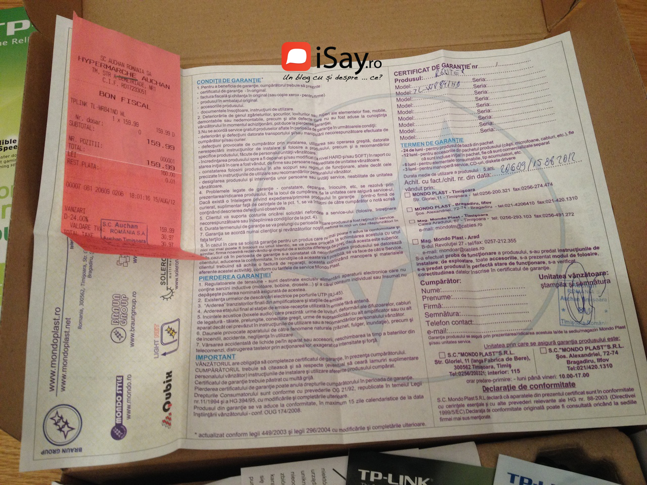- garantie valabila pana in 15.august.2014
