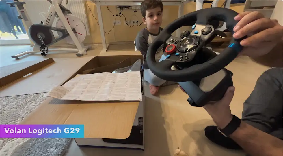 De Black Friday în 2022 m-am hotărât să îi fac un mic cadou lui David ca jocurile cu mașini să fie mai interesante dacă folosește un volan Logitech G29 cu force feedback. L-am prins la preț bun, l-am comandat de pe eMAG și mi-a ajuns în stadiul din videoclip. Coletul a fost lovit, rupt, cutia orginală, inclusiv cutia produsului.